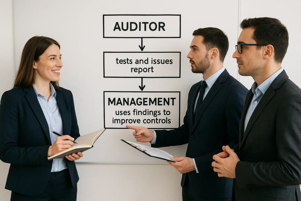 - Auditors offer recommendations in a management letter; accountants implement control improvements.